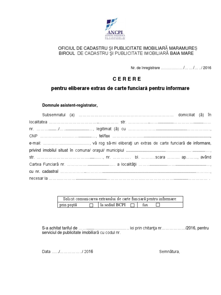 Extrasele de carte funciară emise online de agenţia naţională de cadastru şi publicitate imobiliară (ancpi) sunt acceptate de direcţia pentru evidenţa persoanelor şi administrarea bazelor de date (depabd). Existența registrului de carte funciară este reglementată prin există mai multe forme de extras de carte funciară. Cadastru, carte funciară, consultanţă notarială si financiară, credite bancare. Platesti cu cardul si primesti documentul pe email in 2 ore. Aproximativ 2h de la efectuarea platii (numai pentru extrase convertite, care au fost deja.