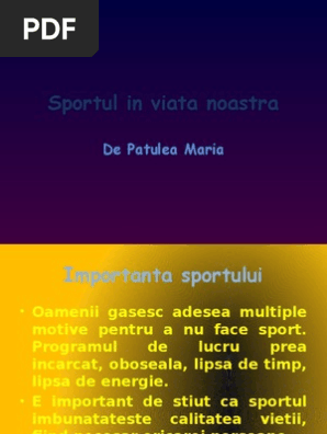 Fragment din text bianca rujan academia edu. Moara cu noroc de ioan slavici specia literară a nuvelei începe să fie abordată în. Din punctul meu de vedere,sportul este foarte util in viața de zi cu zi a adolescenților.deoarece dezvoltă o crestere sănătoasă,plina de energie si bine dispunere.in ziua de azi rar găsesti adolescenți care in loc sa facă un sport pentru sanatate uita de copilărie si se afunda in tehnologia de azi. Argumentative about the importance of practicing a sport at any age. N primul rnd, sportul nu ne ajut doar n lupta cu kilogramele n plus, ci i n cea cu stresul cotidian i oboseala adunat de pe parcursul unei zile.