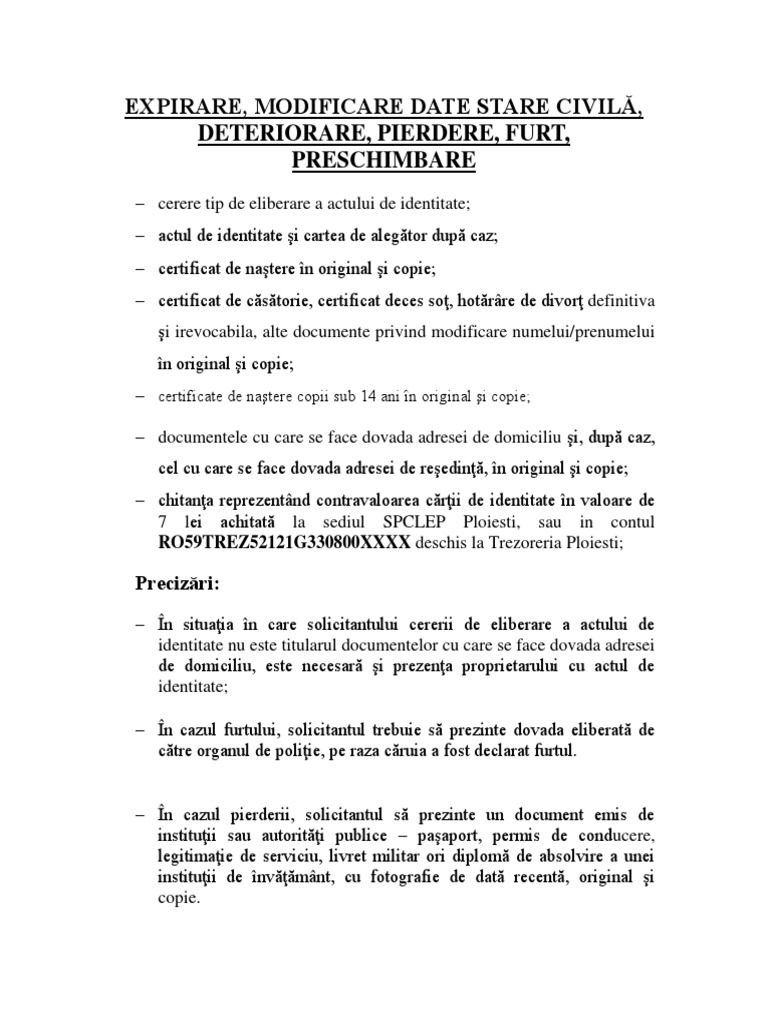 Acte Necesare Schimbare Buletin Ploiesti