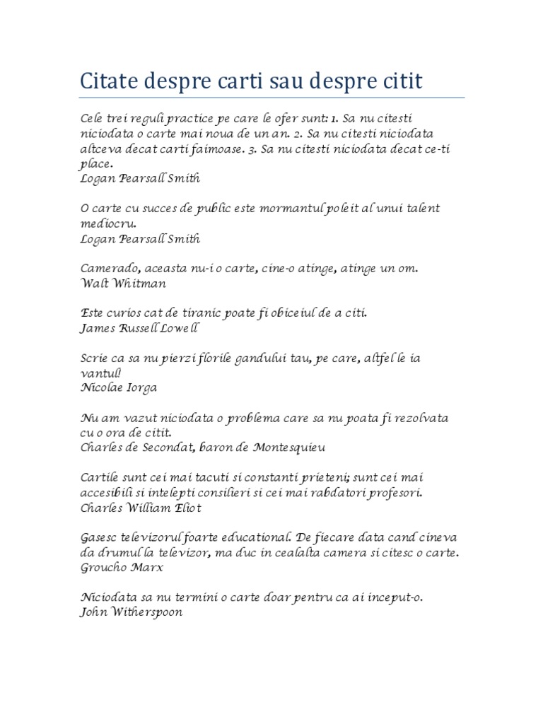 Această inițiativă a luat viață ca fiind o alternativă gratuită, pe care să o poți utiliza cu plăcere și pe care să o recomanzi tuturor celor care știi că au nevoie și, poate, nu își pot permite să cumpere multe cărți ca să le citească. Citate despre cărți de vasile alecsandri, thomas jefferson, marcus tullius cicero, pavel corut, costel zăgan, abraham lincoln, vasile romanciuc, charles w. Aceste două distracții nu vor face.